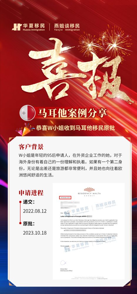 W小姐属于非常年轻的申请人,工作年限不长,收入流水就很难满足要求,自身没有足够的资金积累,因此需要用母亲资产赠与的方式。但考虑母亲后期也会以团聚的方式移民,所以资产申报需格外谨慎,这一点在操作上非常考验文案的水平。华夏移民文案为客户制定了适中的资金解释方案,成功获得移民官的认可,顺利获批。