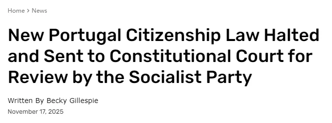 原本在10月28日经议会投票通过的新法,只差总统签字即可正式生效,但葡萄牙社会党(PS)要求宪法法院进行“预防性审查”,使得整部法案被迫冻结。