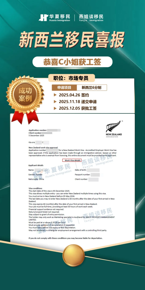 签约后,我们为她系统梳理材料、优化简历与技能证明,并同步联系新西兰多家雇主。大约半年时间,成功为她匹配到当地企业的市场专员(Marketing Specilist)岗位。