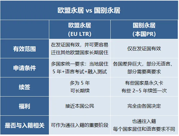 这一点最关键,国别永居可能不要求语言,但欧盟永居一定会要求语言以及融入考试。