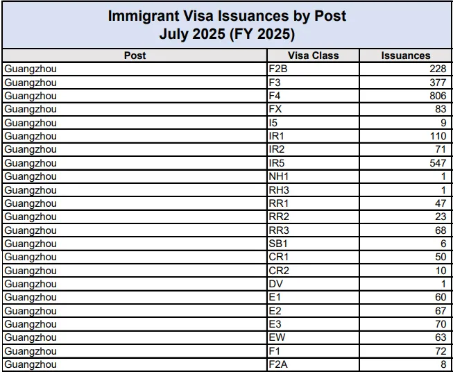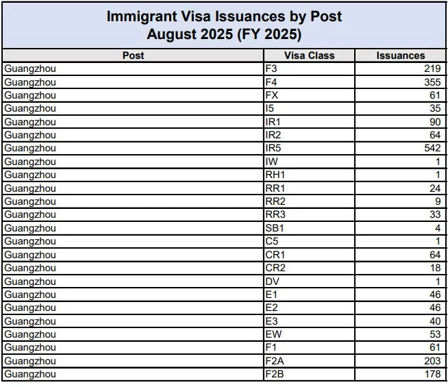 美国国务院终于更新了2025年6~8月的签证发放数据,这是自从去年5月以后的首次更新。